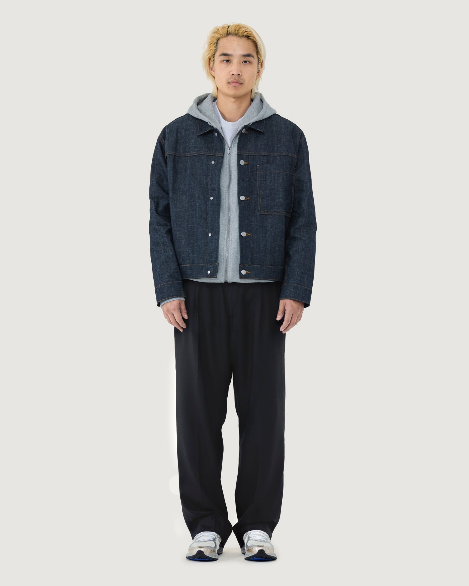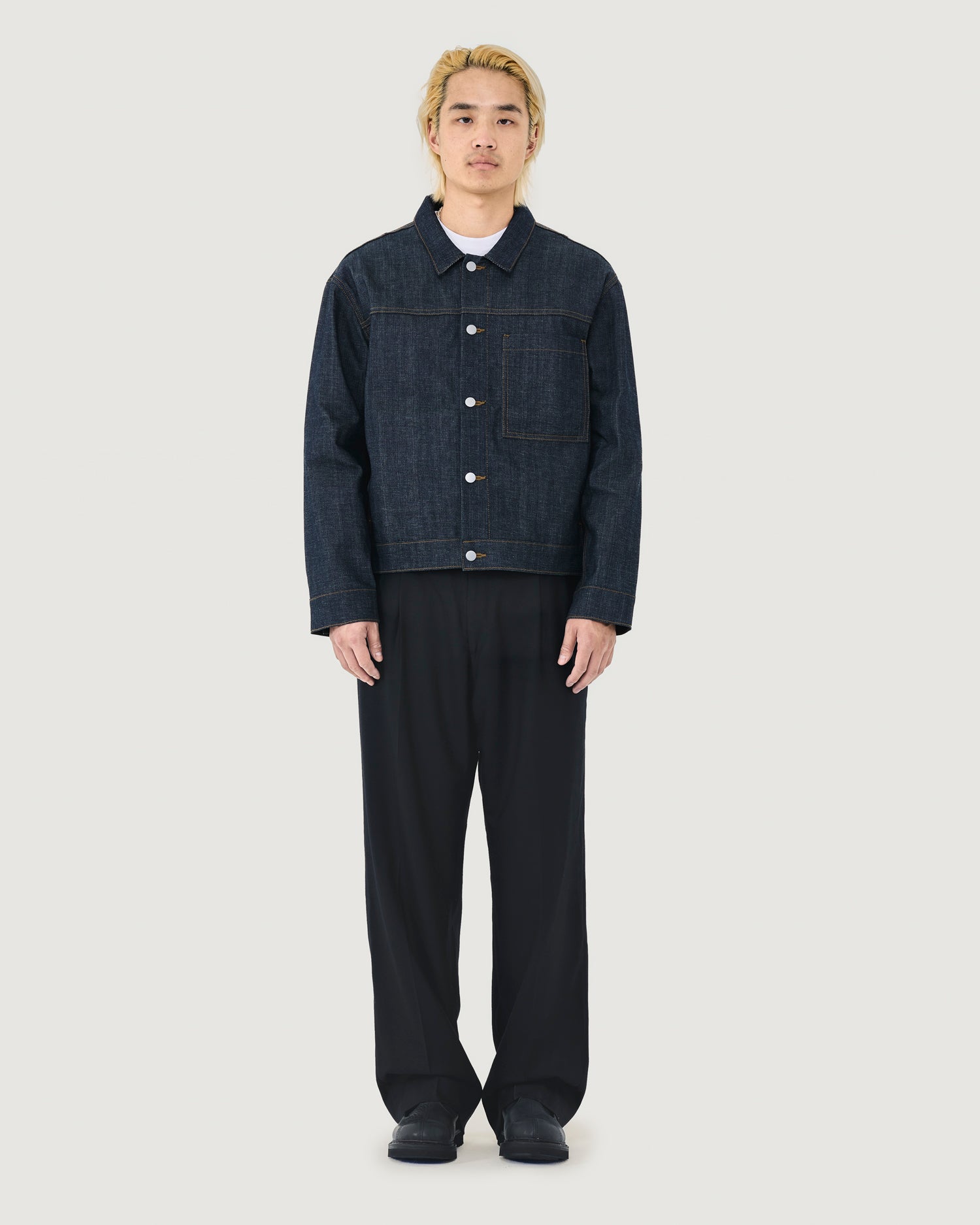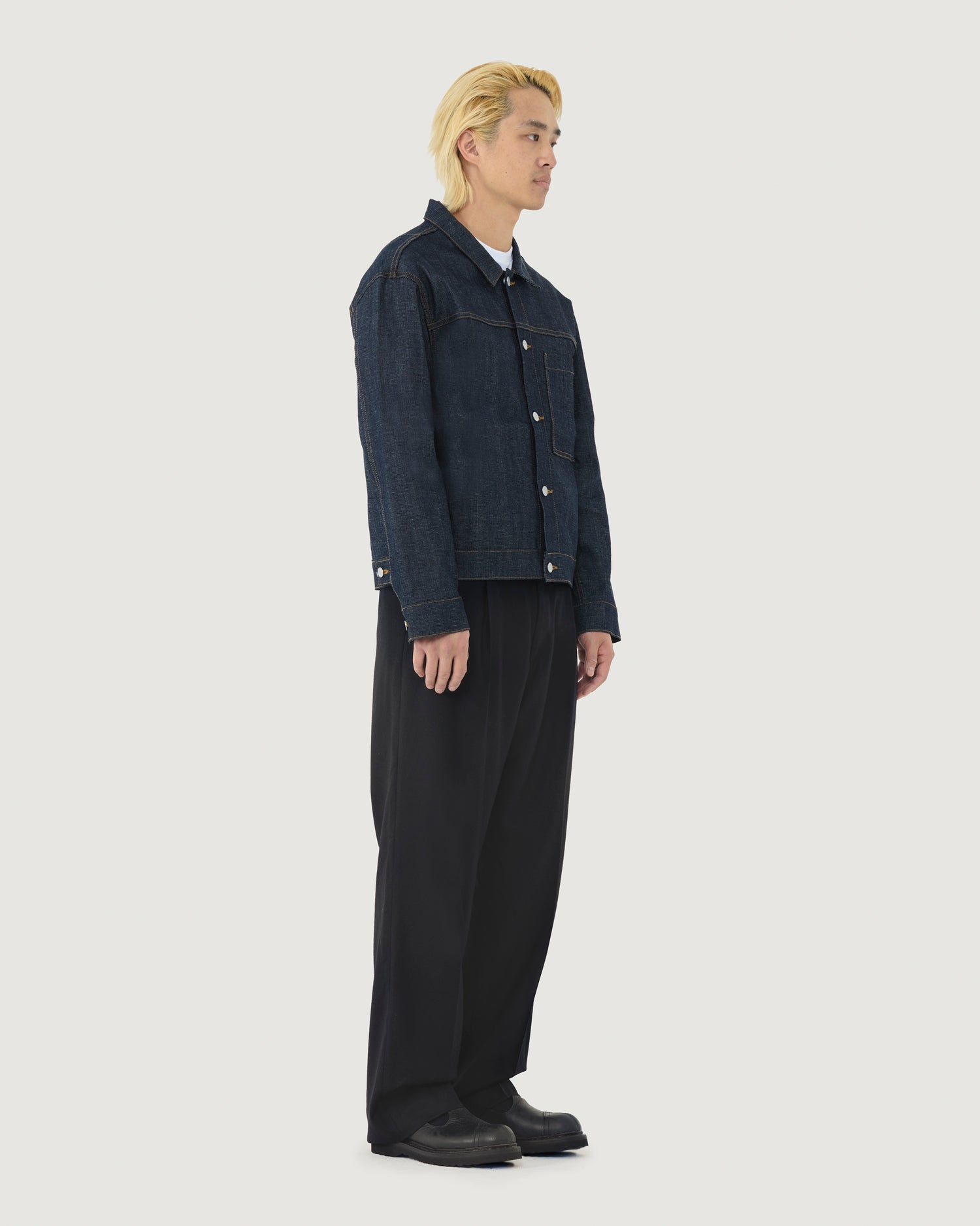 Type I trucker jacket with boxy fit, dropped shoulders, and cropped body. Ideal for layering with a crewneck, hoodie or button up shirt.