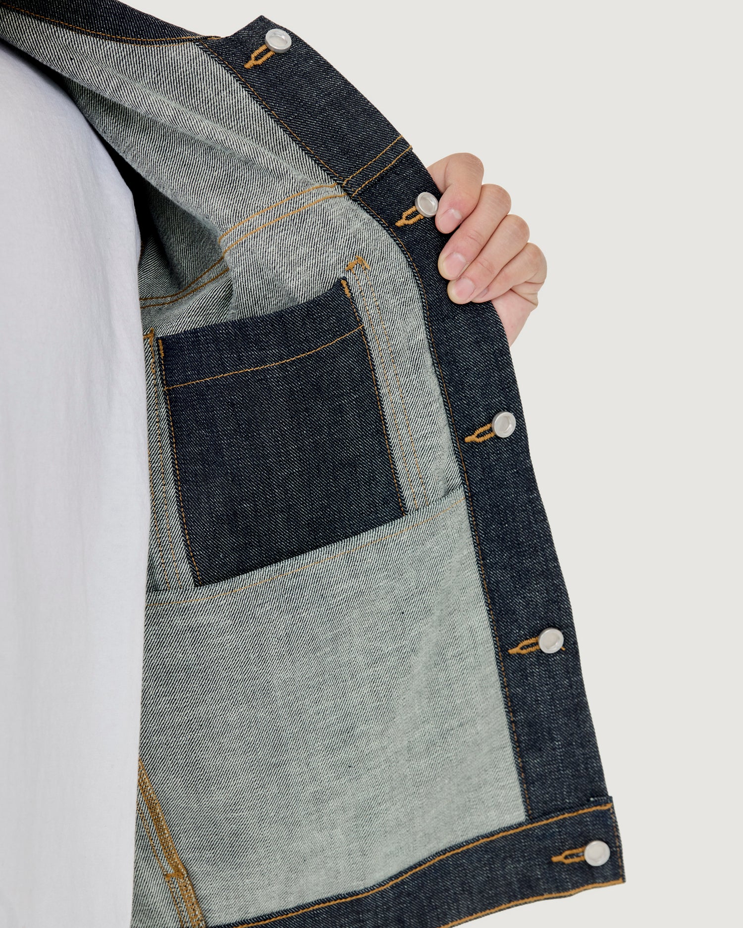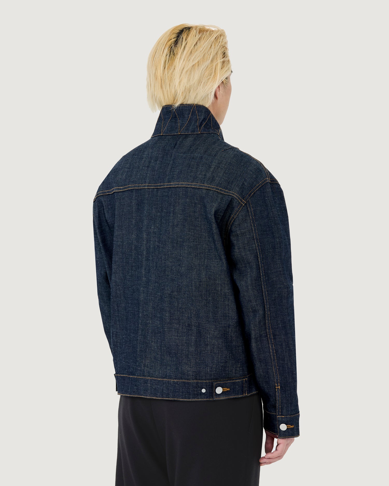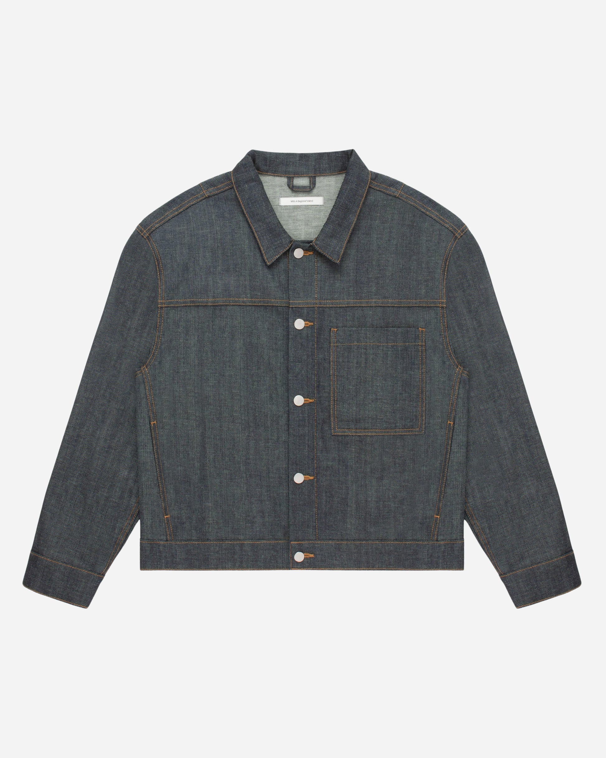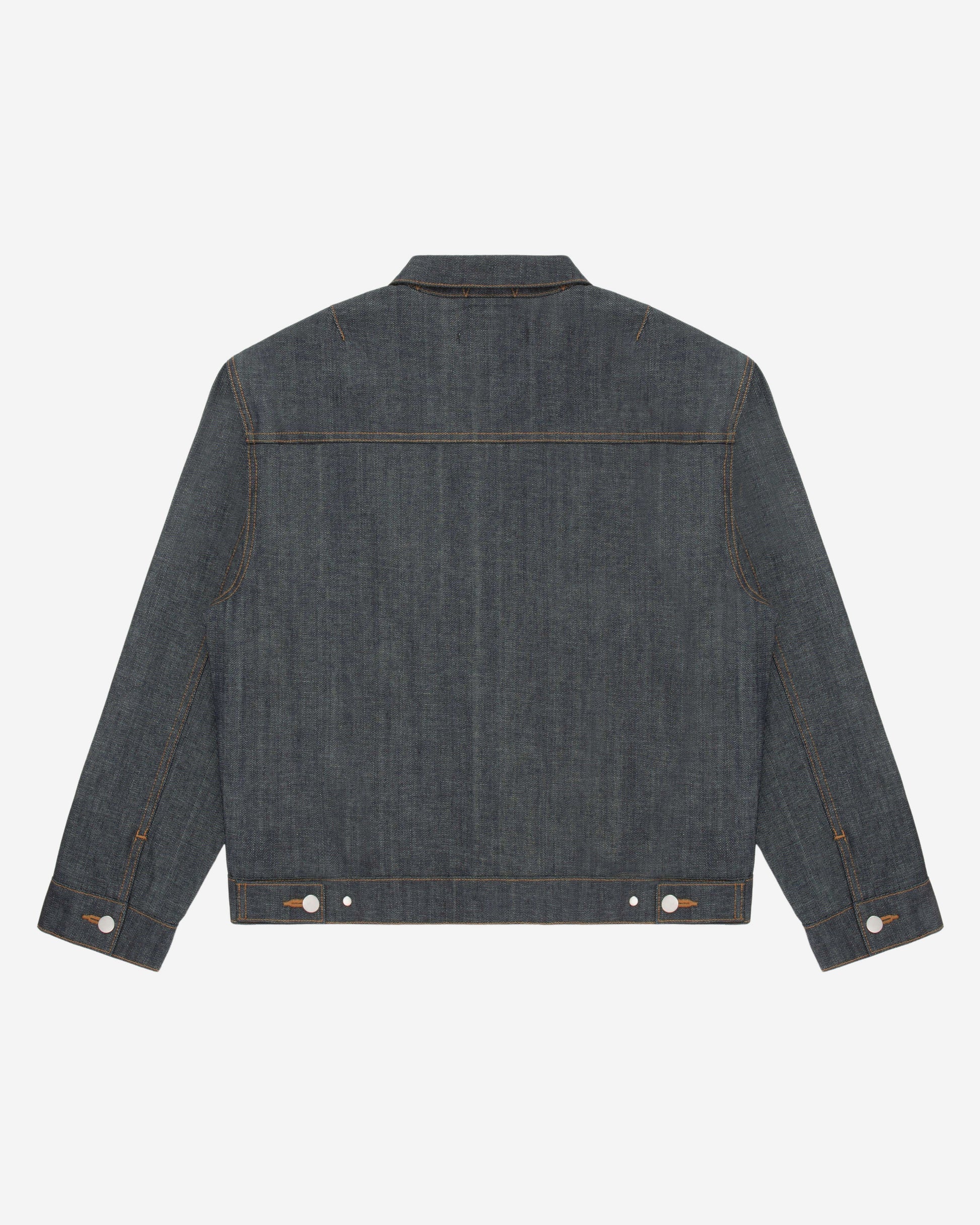 Inspired by WWII era denim jackets and military spec outerwear. Details include zig-zag stitching underneath the front collar and darting across the back.