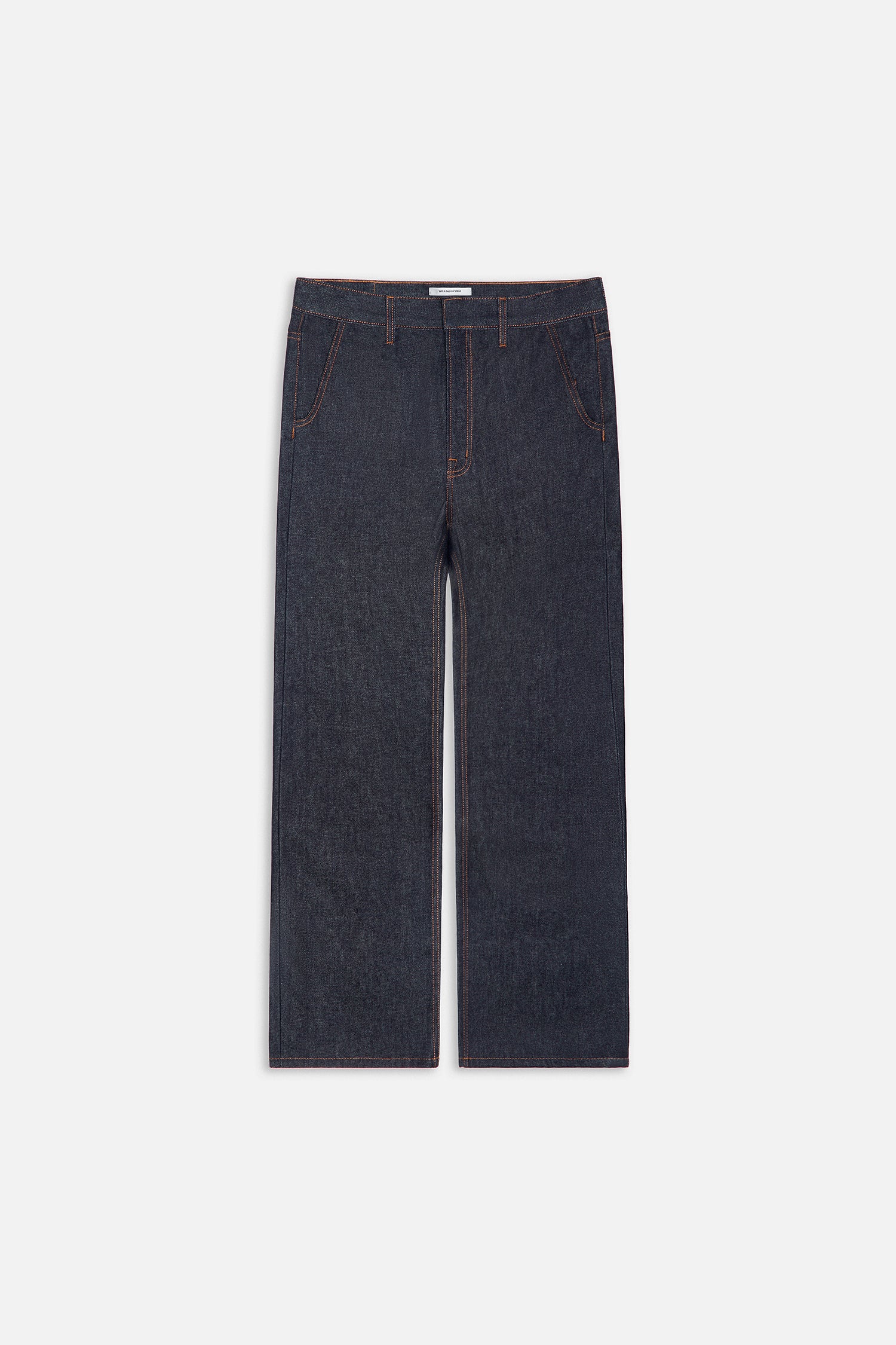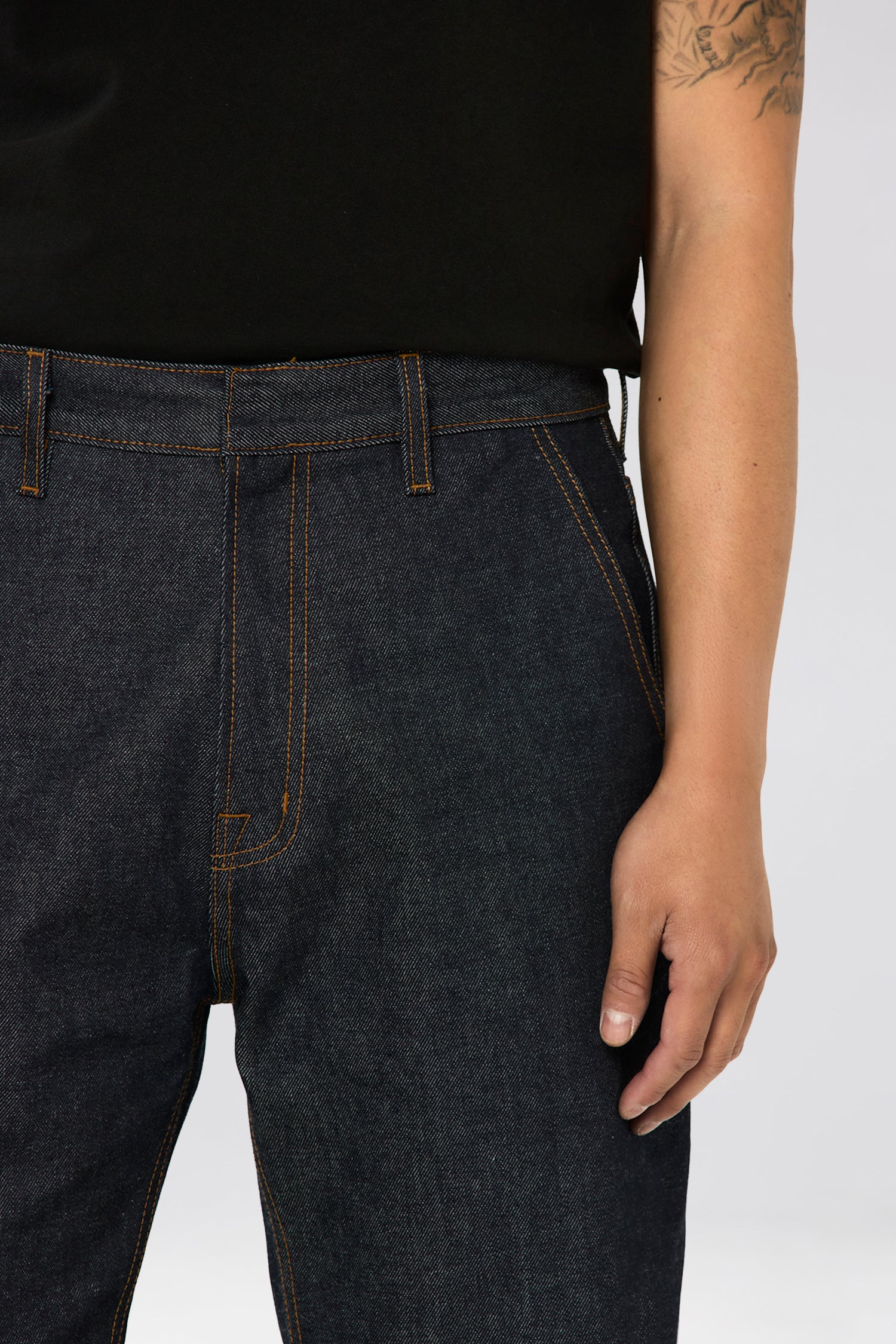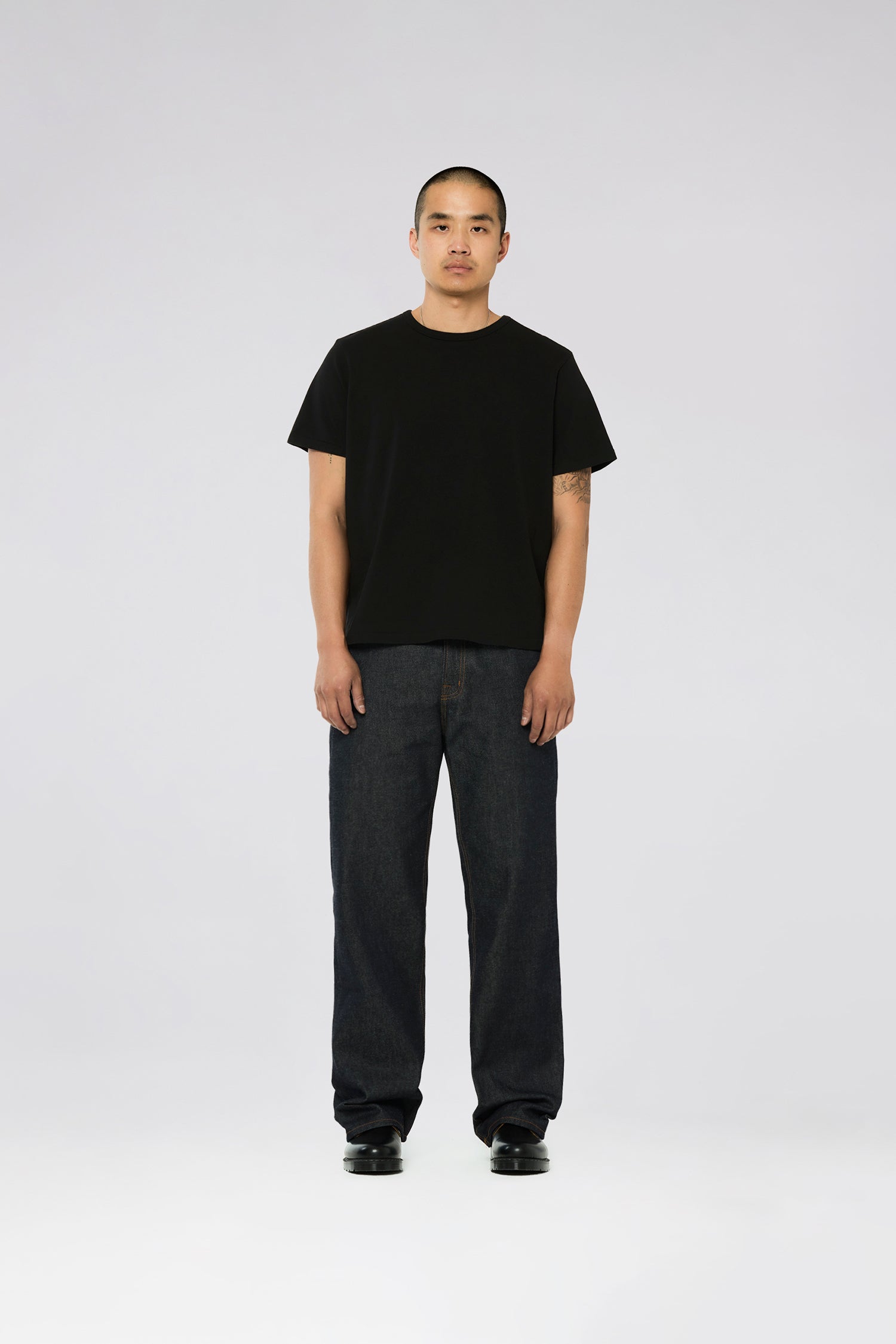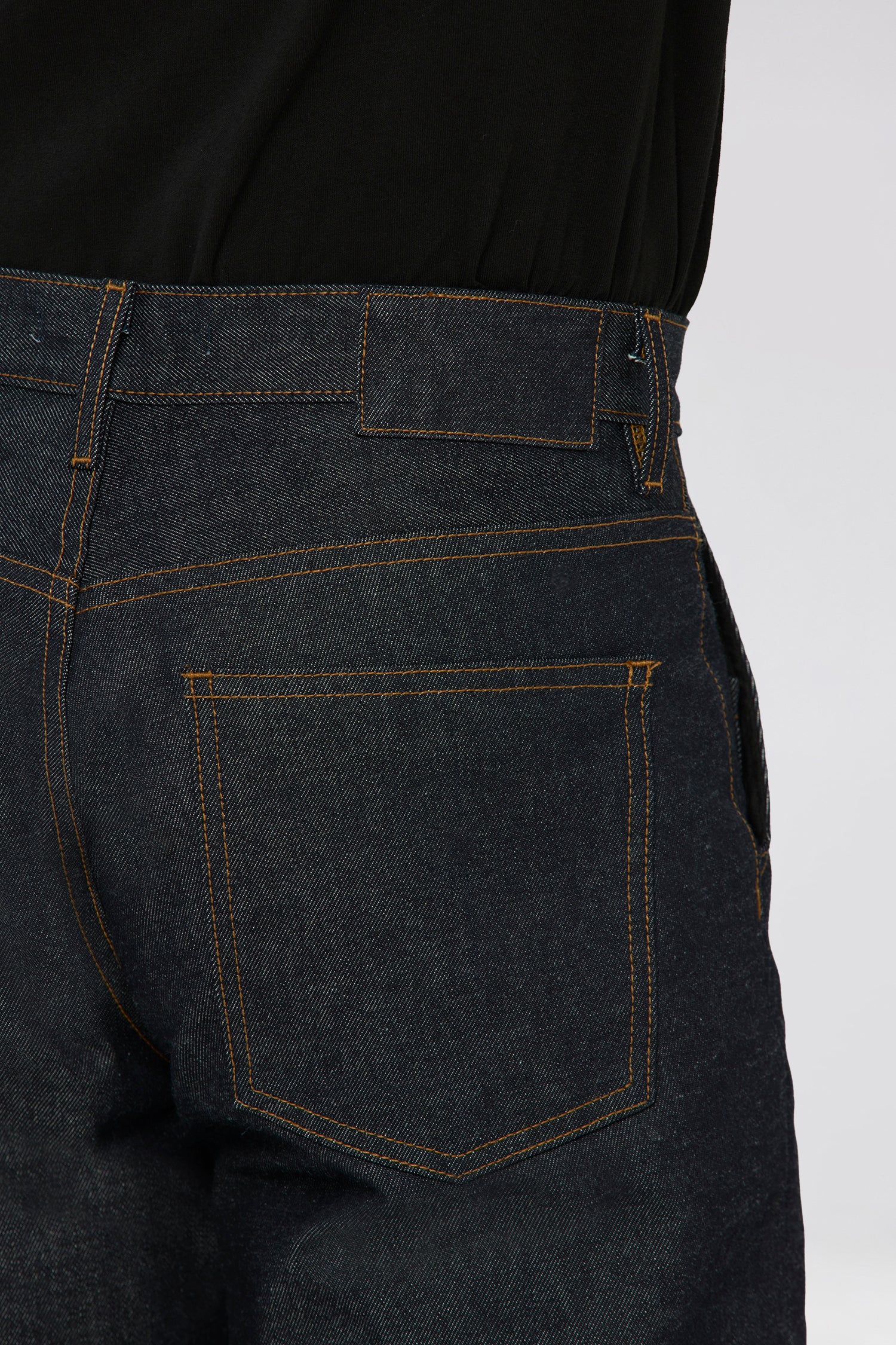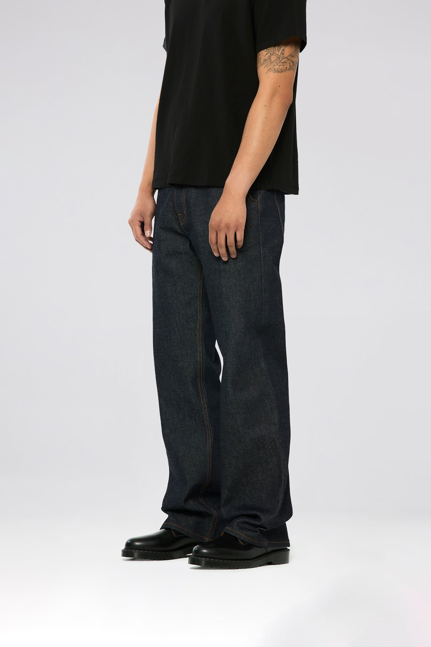 It features a relaxed rise and wide, straight leg fit. The denim softens over time creating a slouchy silhouette that conforms to your body. Within 6 months of wear, contrast fades will develop between the indigo and white yarns.