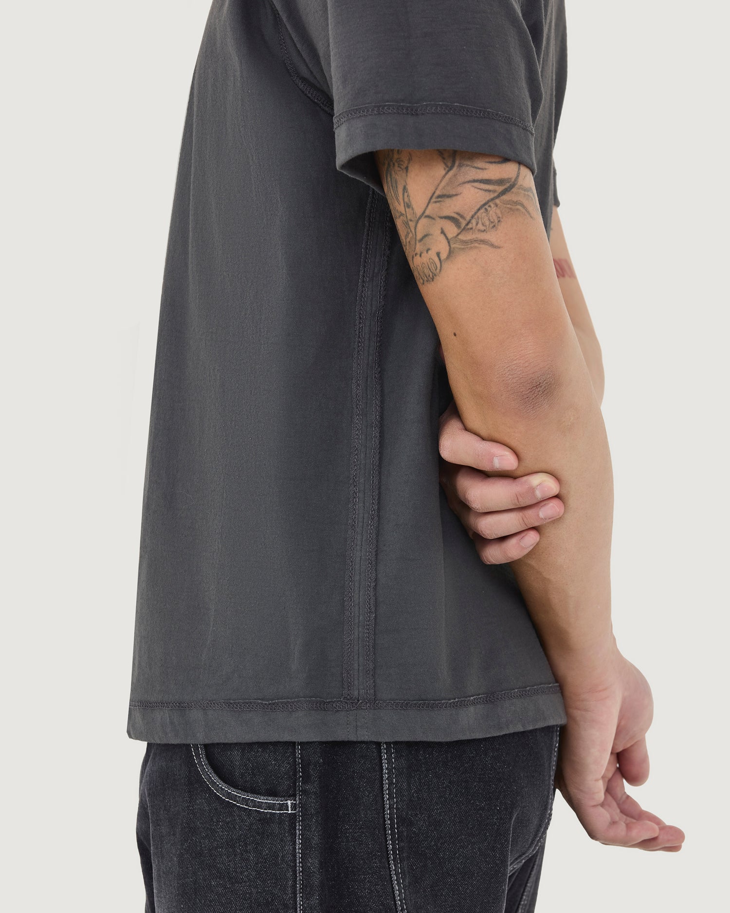 Piece-dyed fabric is dyed before it's cut and sewn, resulting in a more uniform color throughout. The fabric maintains its color after each wash and gets softer with wear.